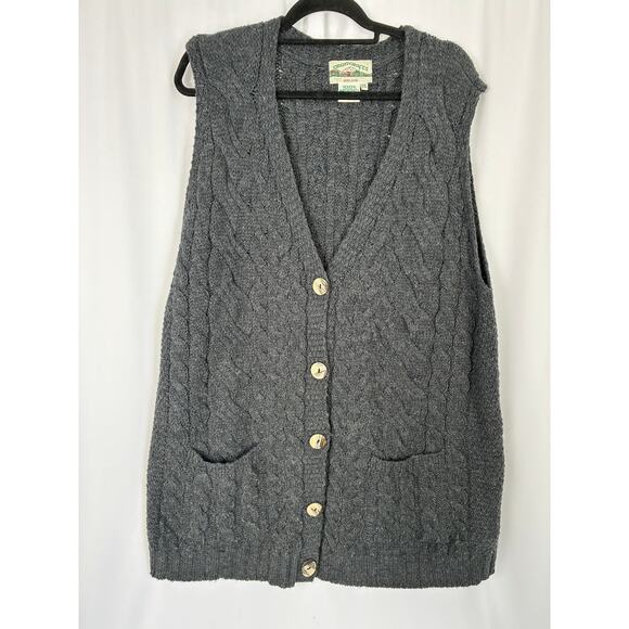 Aran Crafts 100% Merino Wool Sweater Vest Womens XXL Gray Cable Knit Fisherman