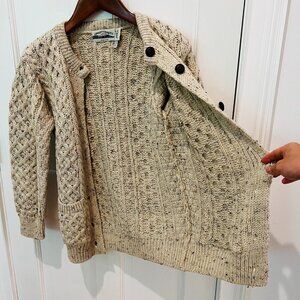 Aran Crafts Cardigan Oatmeal 100% Wool Cable Knit Sweater Pockets Ireland XS