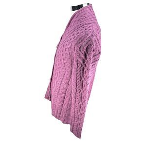 Aran Crafts Cardigan Sweater Women’s Small Pink Merino Wool V-Neck Button New