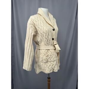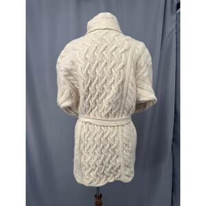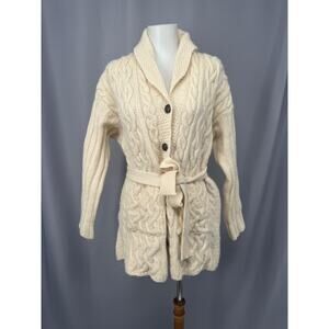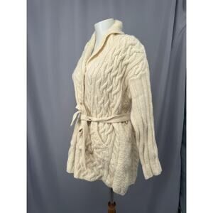 Notes: Classic Irish Aran styling with belted waist for a flattering fit. Tag size is L; please refer to photos for overall look and drape.