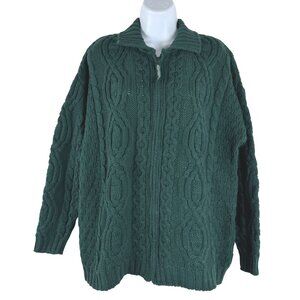 Aran Crafts Fisherman Sweater Womens Medium Green Merino Wool Cable Knit Full Zip Ireland NWT CJ-2135
