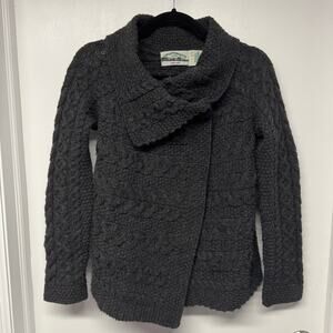 Aran Crafts Gray Thick Cable Knit Cardigan Sweater 100% Irish Wool Size Small