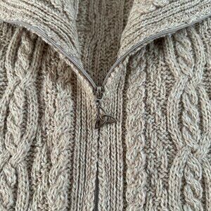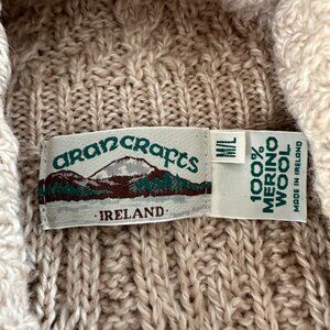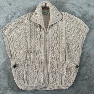 Aran Crafts Ireland 100% Merino Wool Cream Poncho Sweater Knit Medium Large