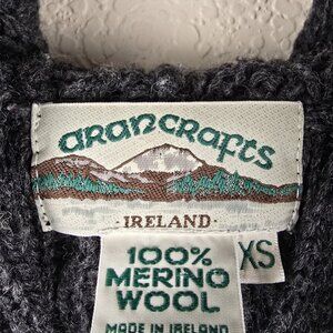 Aran Crafts Ireland 100% Merino Wool Hooded Long Cardigan Sweater XS Gray Cable