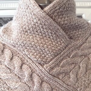 Aran Crafts Ireland Fisherman Knit 100% Merino Wool Poncho