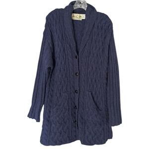 Aran Crafts Limited Edition Merino Alpaca Wool Cardigan Sweater Blue L Ireland
