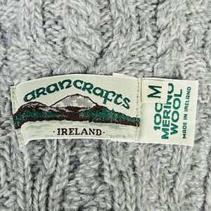 Aran Crafts Medium Cardigan 100% Merino Wool Chunky Knit Collar Gray Ireland