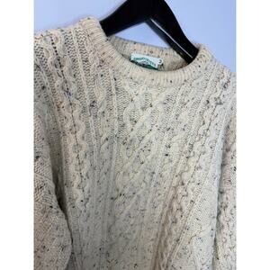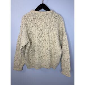 Aran Crafts Men's M Wool Cable Knit Fisherman Crew Neck Sweater Cream