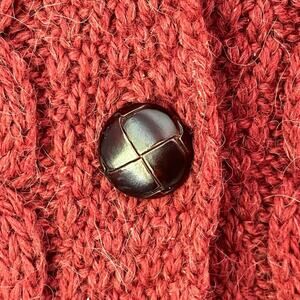 Aran Crafts Merino Wool & Alpaca Cableknit Cardigan Sweater Womens Small Rust