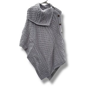 Aran Crafts NWT Merino Wool Poncho Sweater Women’s Size M/L Gray Cowl Neck