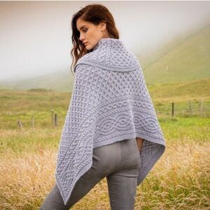 Crafted from luxurious Merino wool, this women’s poncho in size M/L offers exceptional softness, warmth, and breathability. The gray color makes it versatile and easy to pair with a wide range of outfits, while the intricate cable and textured knit patterns showcase traditional Irish craftsmanship.