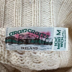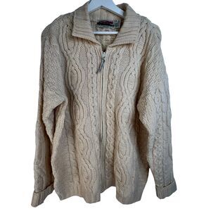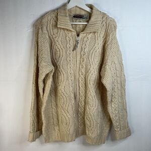 Aran Crafts Size M Full Zip Cardigan Sweater Ireland Fisherman Cable Knit Cream