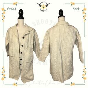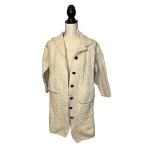 Aran Crafts Sweater Womens Large Long White 100% Merino Wool Cable Knit Ireland
