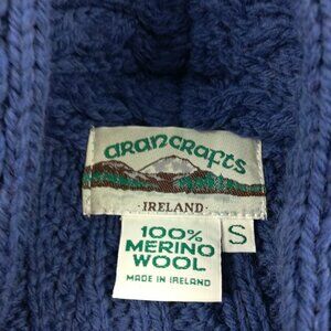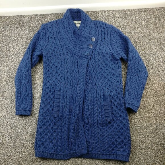 Aran Crafts Sweater Wool Cable Knit Cardigan Crossover Neck Blue Womens Small