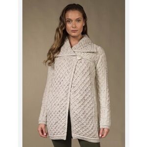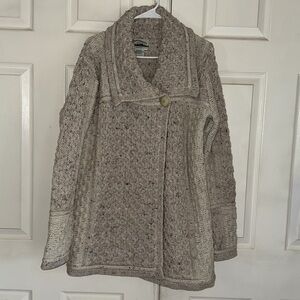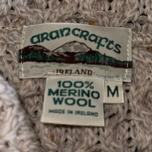 Aran Crafts two tone 100% Merino Wool Made in Ireland sweater. Button closure. Size M. 22” armpit to armpit laid flat. 32 1/2” shoulder to hem. Excellent like new condition
