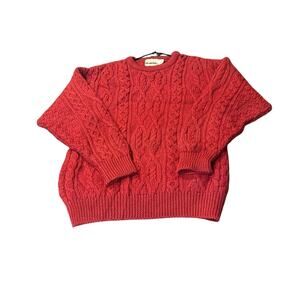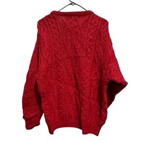 Aran Crafts Vintage Red Fisherman Cable Cardigan Sweater Sz Med Wool Ireland