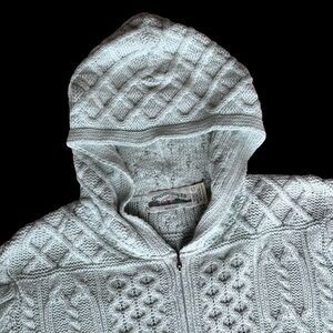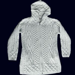 Aran Crafts Womens Irish Cable Knit Merino Wool Hooded Coat Sweater S Fisherman