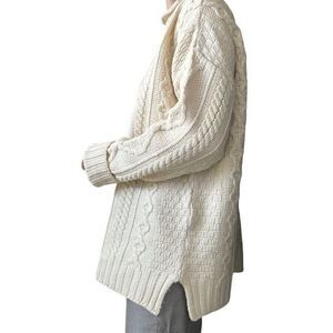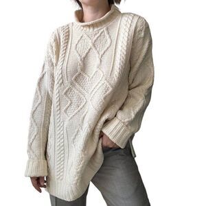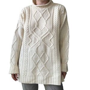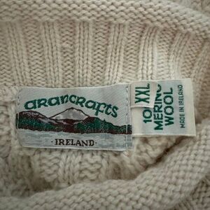 Aran Crafts Womens White 100% Merino Wool Cable Knit Fisherman Irish Sweater XXL