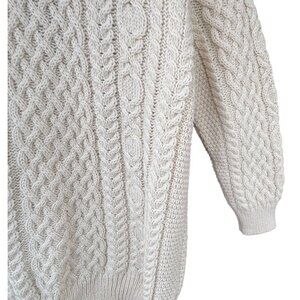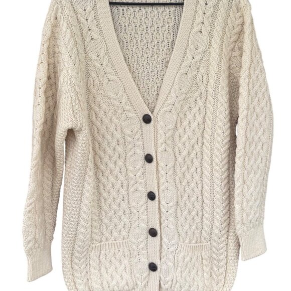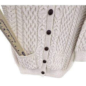 Aran Crafts XL Irish Cable Knit Cardigan Sweater 100% Merino Wool Cream