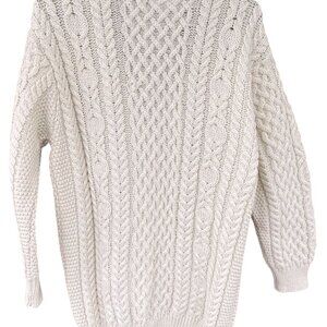This Aran Crafts cardigan sweater, crafted in Ireland, combines traditional cable-knit patterns with the luxurious feel of 100% Merino wool. Its XL fit ensures comfort and warmth, while the cream hue and durable buttons provide a timeless style.