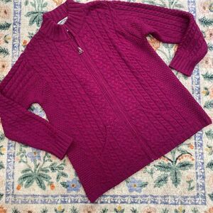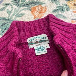 Aran Crafts Full Zip Sweater Cardigan Jacket 100% Merino Wool Ireland Large