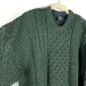 Aran Inisheer Sweater Green Wool Cable Knit Pullover Ireland Sz XL Men's