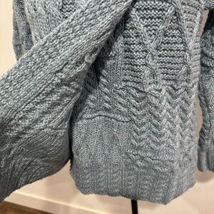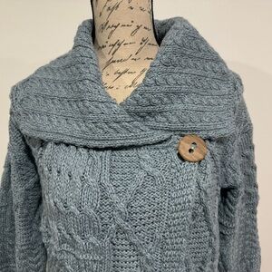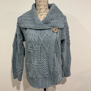 Aran Ireland 100% Merino Wool Céide Ladies Aran Chunky Cardigan Blue Size Small