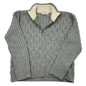 Aran Islands Knitwear Men's 100% Wool Gray Cable Knit Half-Zip Sweater Size M