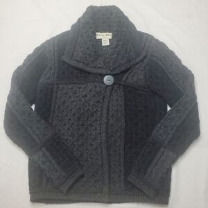 Aran Mor Ireland Women's Cardigan Size M 100% Merino Wool Cableknit Chunky Gray