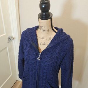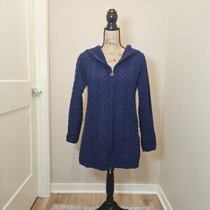 Aran Mor Navy/Black Hooded Sweater Jacket Size Small