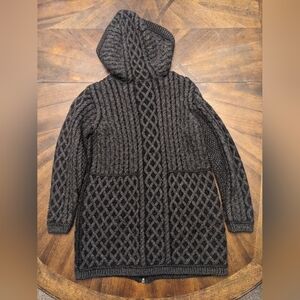 Aran Mór Ireland Hooded Merino Wool Cardigan Sweater Zip Celtic Knit Medium