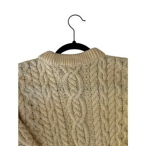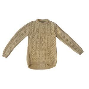 Vintage Aran Mõr Irish beige wool sweater combines classic craftsmanship with timeless style. Made from high-quality wool, it offers warmth and comfort, making it an ideal choice for cooler weather.