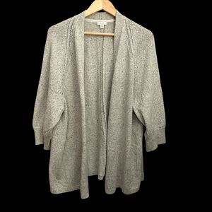 Aran Sweater Market 100% Pure New Wool Grey Cable Knit Button-Up Crossover Wrap