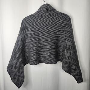 Aran Sweater Market Herringbone Gray Merino Wool Poncho Sweater Made in Ireland