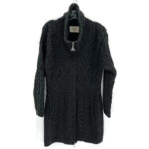 Aran Sweater Market Ireland Merino wool fisherman full zip long cardigan