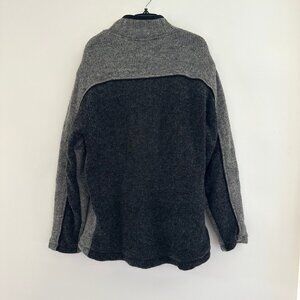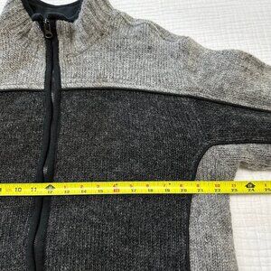 Aran Sweater Market Wool Zip Up Sweater Jacket Fleece Lined Gray Fisherman