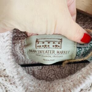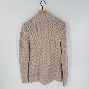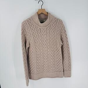 Aran Sweater Market Super Soft Polo Neck Sweater Oatmeal Merino Wool Size L
