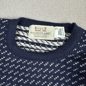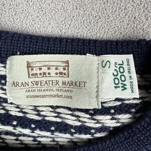 Aran Sweater Market Wool Sz Small Norwegian Bird Footprint Navy Blue Ireland