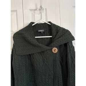 Aran Woolen Mills 100% Merino Wool Patchwork Cardigan Sweater – Forest Green, Size Large