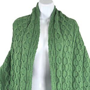 Aran Woollen Mills Fisherman Shawl Wrap One Size Green Merino Wool Cable Knit Ireland Chunky Knit NWT FS-1455