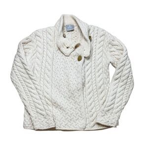 Aran Woollen Mills Super Soft Merino 3 Button Sweater Ivory Medium