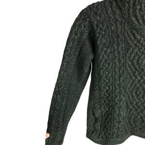 Arancrafts Sweater Womens Sz M Dark Green Asymmetrical Zip Chunky Wool Cable Knit