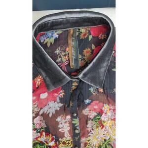 Aratta Shirt Womens Small Black Floral Embroidered Sheer Tunic Boho ED18I34