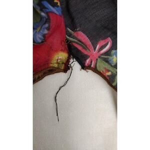 Color/Design: Black base with multicolor floral embroidery and vase motifs; sheer fabric