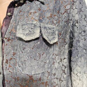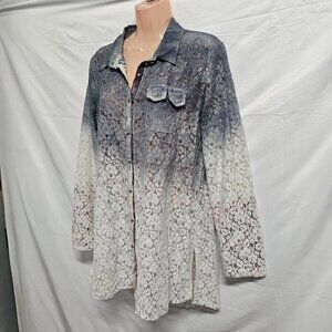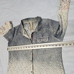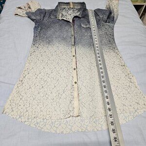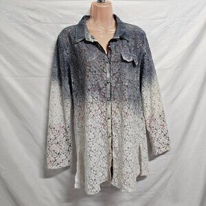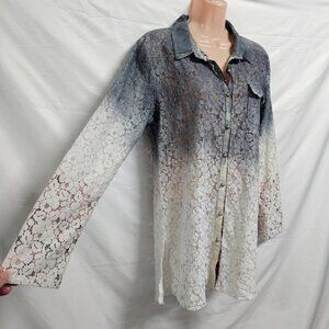 Aratta Silent Journey Button Up Lace Top Blouse Shirt Women Size M Ombre Cotton