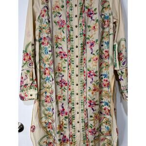 Aratta Silent Journey Collection Midi Dress Large NWT Cream Embroidered Florals