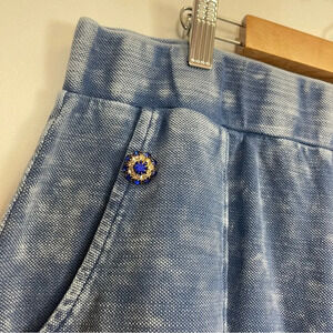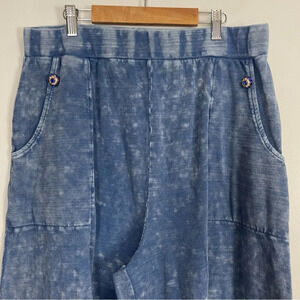 Aratta Silent Journey Distressed She Does Not Care Flare Leg Knit Pants XL Blue