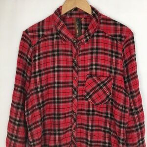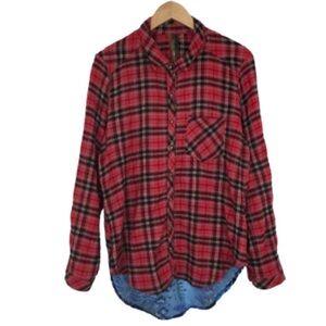 Aratta Silent Journey Flannel Button Up Tunic Top Velvet Floral Back Panel Sz M