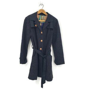 Aratta Silent Journey Jacket Womens Small Black Brocade Blazer Sash Button Up