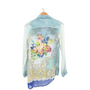 Aratta Silent Journey Sheer Ombre Long Sleeve Floral Back Blouse Shirt Top S